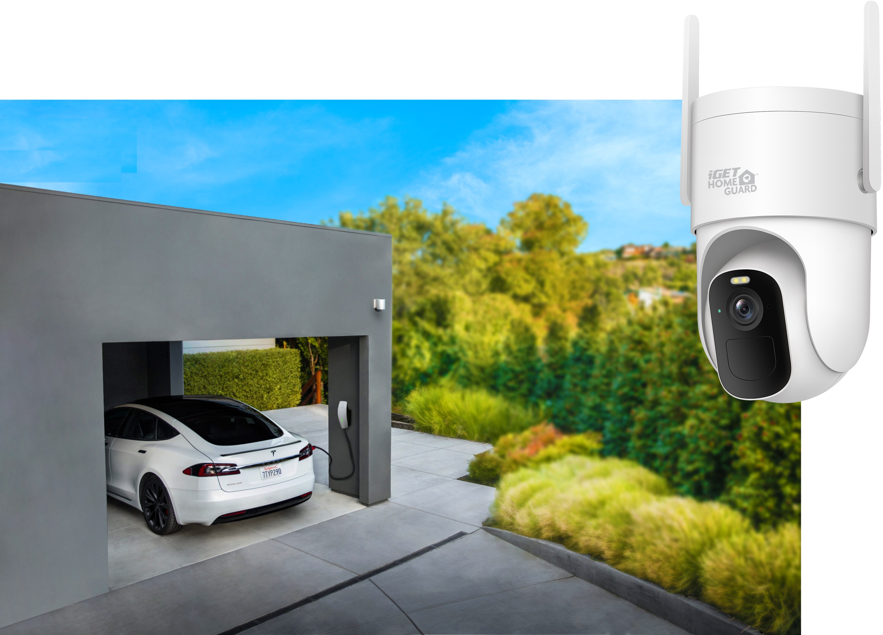 Kameru se připojuje bezdrátovým Wi-Fi připojením 802.11 b/g/n 2.4 GHz, toto připojení podporuje každý Wi-Fi router v domácnosti i ve firmě. Obsahuje konektor microUSB pro dobíjení/napájení a slot na microSD kartu až 128 GB. Součástí balení je také 1m dobíjecí kabel a nabíjecí adaptér. Pro nabíjení je možné použít solární panel iGET HOME Solar SP2.